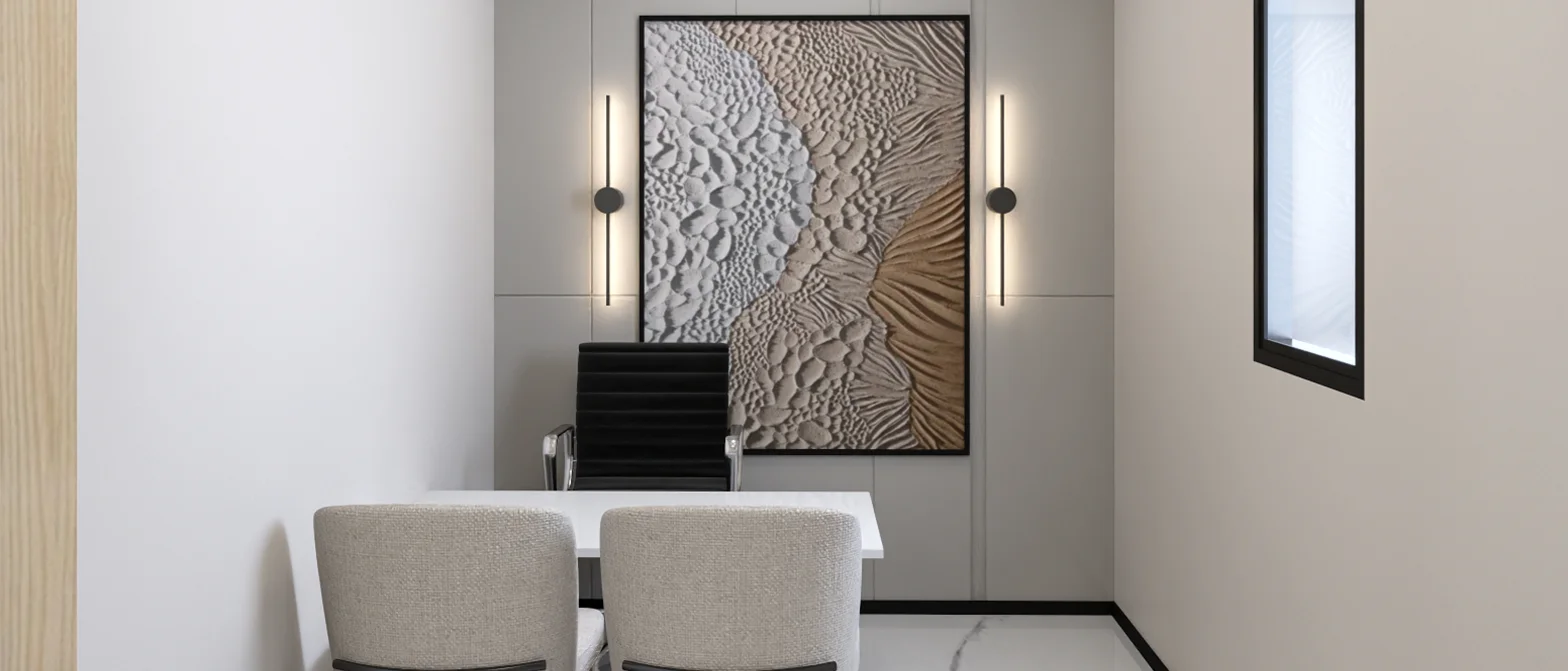 The director’s cabin is more than just a workspace-it’s a reflection of leadership and elegance designed to inspire focus and confidence. Conference rooms were crafted to spark meaningful conversations and innovative ideas, seamlessly blending style and functionality. Every element of this commercial interior design project was tailored to create an environment where work feels inspiring and empowering. The Bhiwadi office now stands as a perfect example of productivity meeting sophistication.